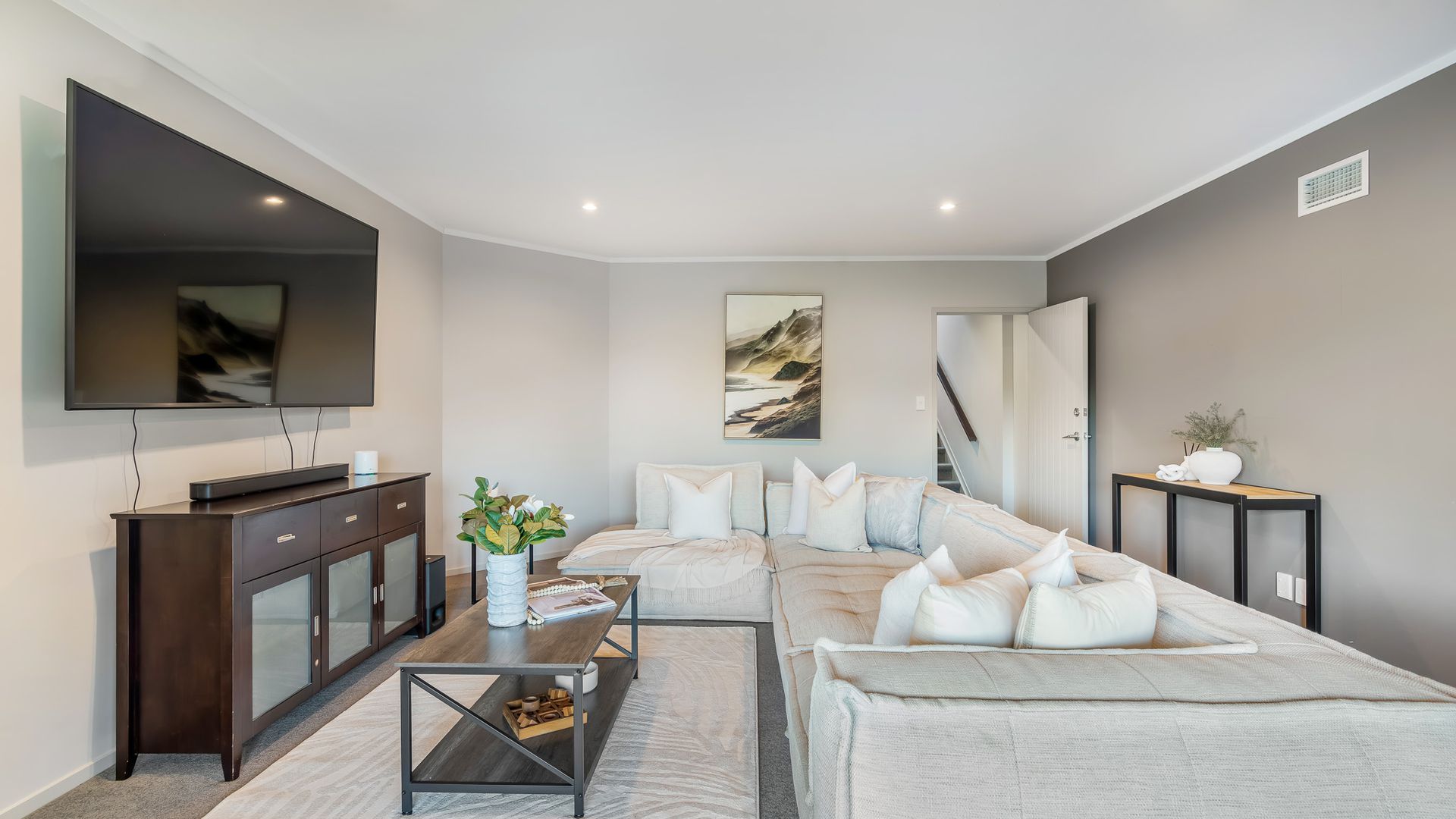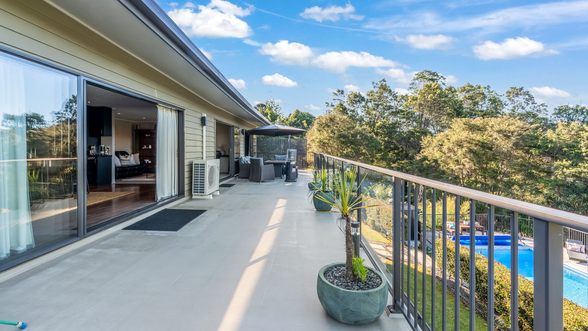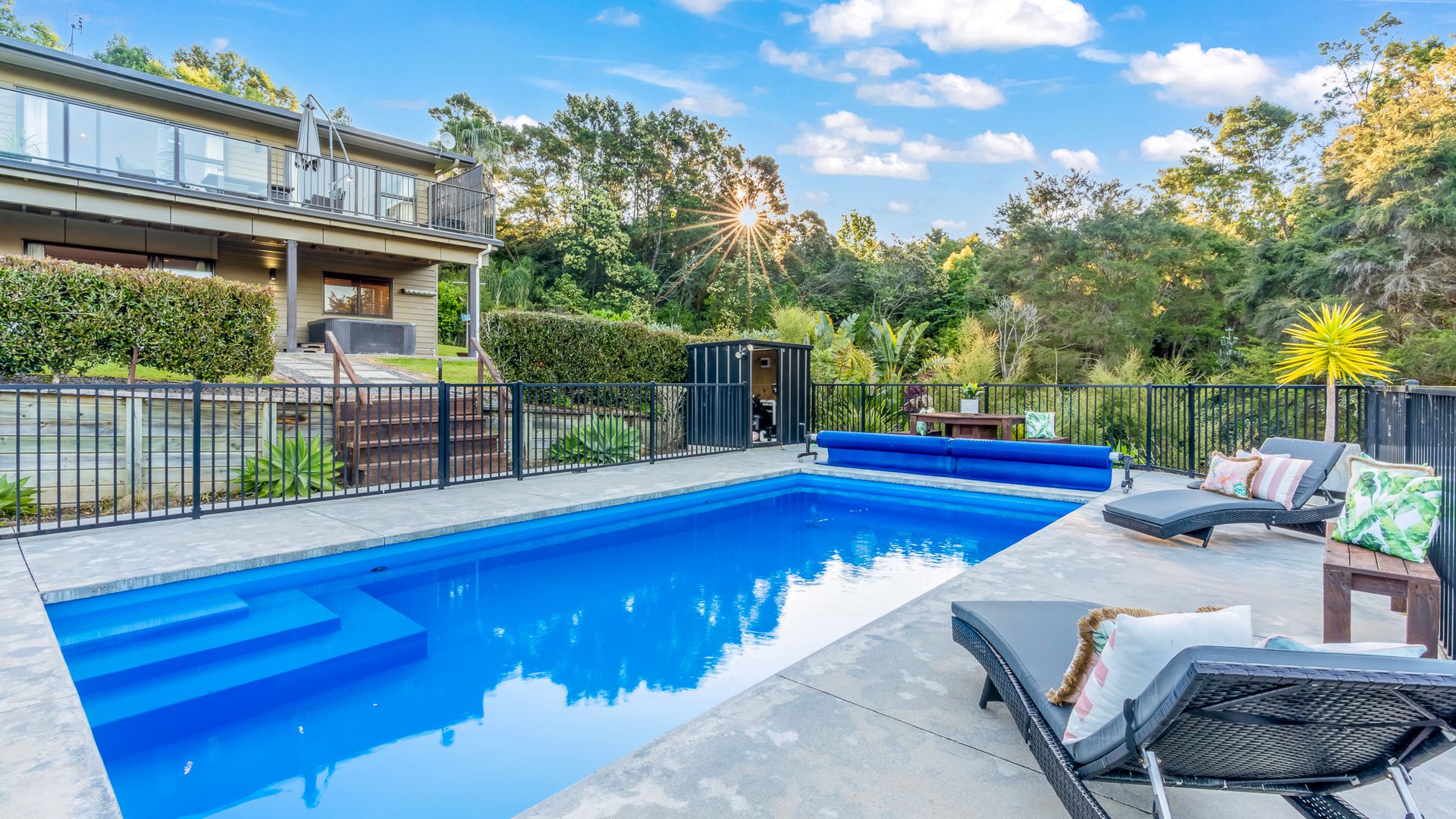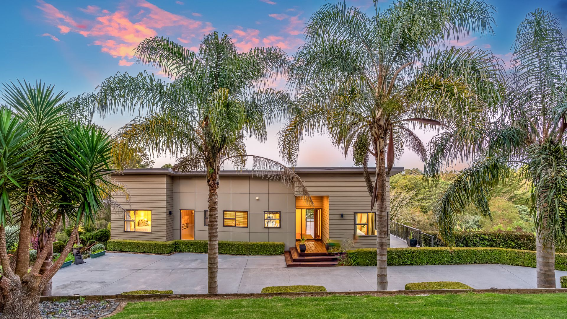 Wrapped in palms and sunshine, this stunning home captures the feeling of a permanent holiday, every single day. Blending luxury, space, and resort energy, Huntly Palms is that rare find. A four-bedroom plus office sanctuary with breathtaking views and effortless flow. From the moment you step inside, you’re met with breathtaking views that frame the native landscape like living art. Sunlight pours through the open-plan living, where the sleek, modern kitchen takes centre stage, and every space draws you outdoors to the north facing expansive deck the perfect spot to soak in the scenery year round.
